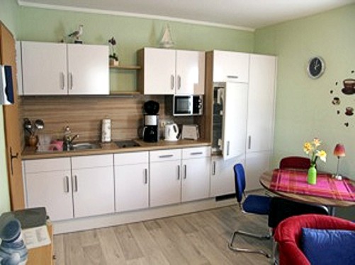 Sie ist mit allem Notwendigen ausgerüstet (Wasserkocher, Mikrowelle, Kaffemaschine,