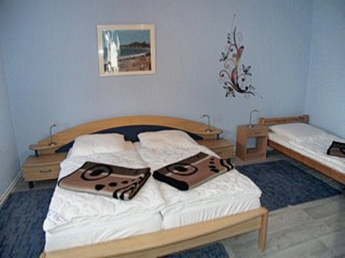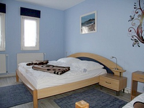 Zwei Personen können im geräumigen Ehebett schlafen. Das dritte Bett