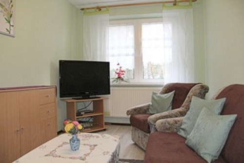 Sie unterteilt sich in einen Schlafraum, einen Wohnraum, eine Küche und ein Bad. Die Ferienwohnung ist beheizbar und kann deshalb ganzjährig genutzt werden.