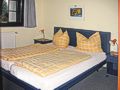 einem Schlafzimmer mit Doppelbett bzw. 2 Einzelbetten (Nr. 3 und 4), Bad