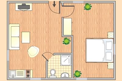 Das Apartment bietet Platz für 2 Personen, eine Aufbettung für